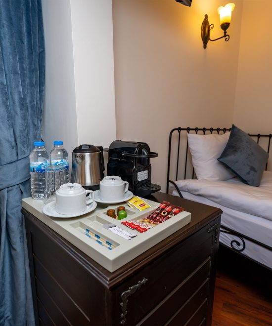 Standart Double Odamızda, 1 çift kişilik yatak, ücretsiz kablosuz internet, kasa, kahve ve çay setup, kapsül kahve makinesi, banyo (wc-duş) bulunmaktadır.