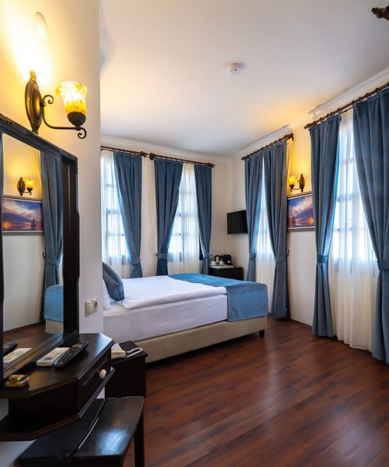 Standart Kısmi Deniz Manzaralı Odamızda, 1 çift kişilik yatak, ücretsiz kablosuz internet, kasa, kahve ve çay setup, kapsül kahve makinesi, banyo (wc-duş) bulunmaktadır.