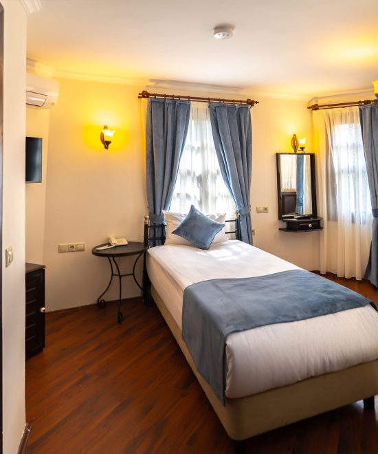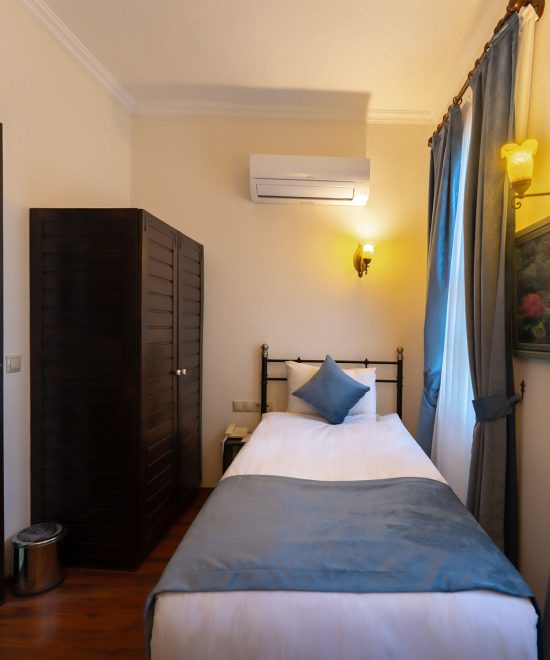 Our Economy Single Room features 1 single bed, free wireless internet, a safe, coffee and tea setup, a capsule coffee machine, and a bathroom (wc-shower).