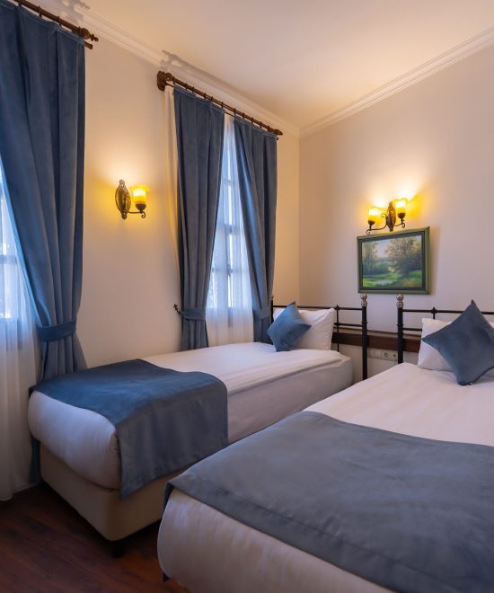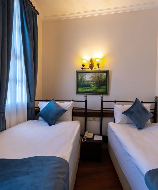 Our Standard Twin Room features 2 single beds, free wireless internet, a safe, coffee and tea setup, a capsule coffee machine, and a bathroom (wc-shower).